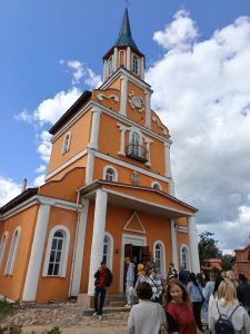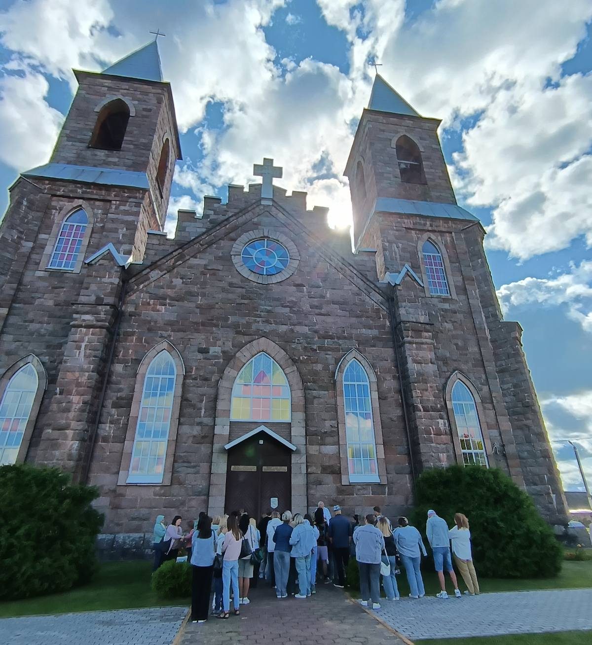 Мы посетили главную достопримечательность деревни Рубежевичи Столбцовского района – костёл Святого Иосифа. Этот величественный храм высотой 45 метров возведен в начале ХХ века в стиле неоготики. Костел облицован каменными плитами, которые придают его облику некоторую суровость и монументальность. На территории рядом с костелом находятся несколько красивых скульптур и памятников.