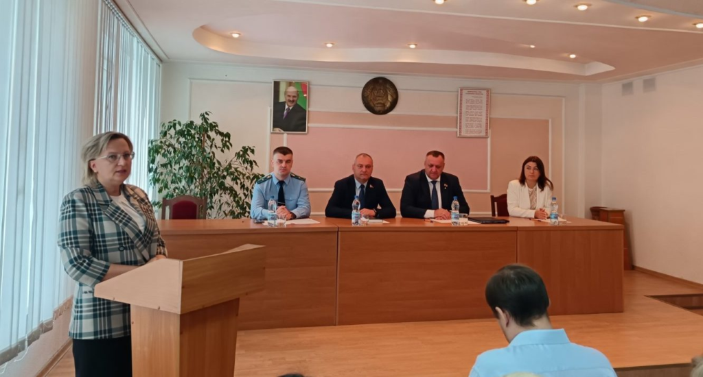 Заместитель Пинского межрайонного прокурора Александр Плескацевич в своем выступлении сделал акцент на важности соблюдения общественного порядка при проведении массовых мероприятий, а также недопустимости правонарушений экстремистской направленности и ответственности за их совершение. Александр Владимирович напомнил, что за распространение (репост, перерепост), хранение экстремистских материалов и подписку на экстремистские Telegram-каналы и Telegram-чаты предусмотрена уголовная ответственность.