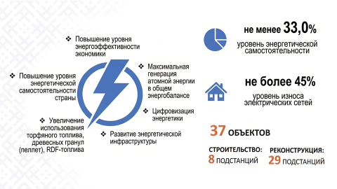 Актуальнейший вопрос – надежность энергетических объектов. «Министерству энергетики следует не откладывая заняться строительством линий всех классов напряжения, а также подстанций с разумным запасом мощности», – констатировал Президент.